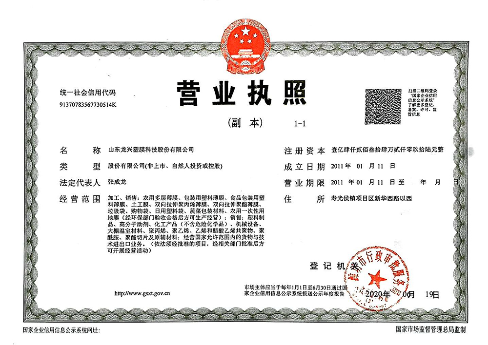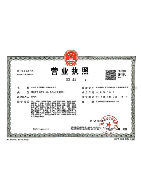 • 龍興塑膜營(yíng)業(yè)執(zhí)照